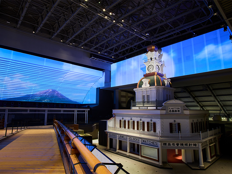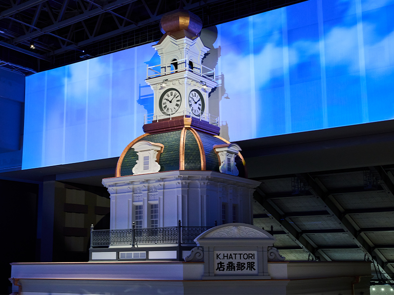その中で、明治時代に東京のランドマークとして親しまれた服部時計店(初代時計塔)が原寸大模型として再現されています。