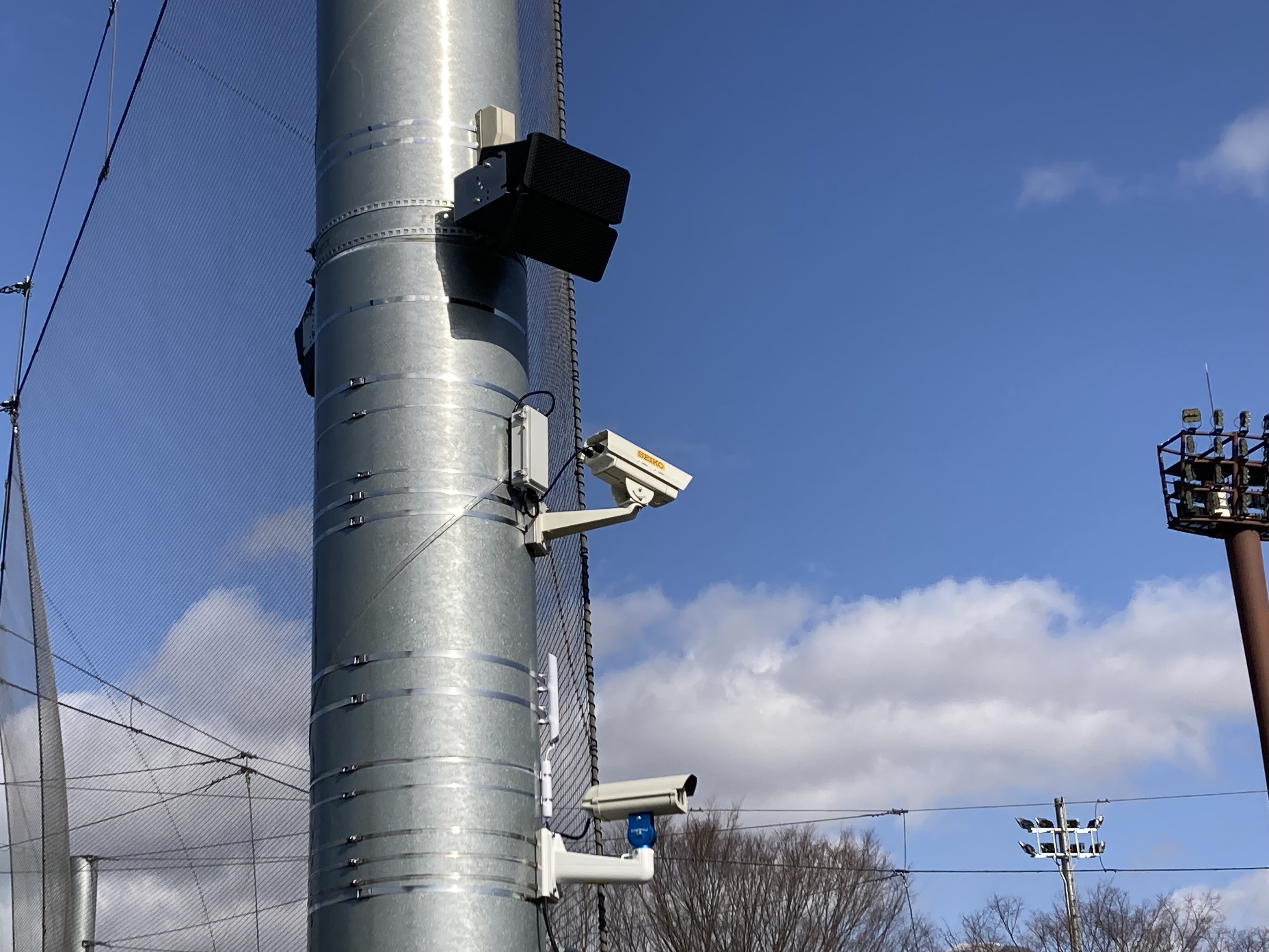 【外形寸法】W15,800mm × H3,700mm【表示面】W14,400×H2,560【表示素子】3in1SMD型高輝度フルカラーLED【絵素ピッチ】16mm【表示内容】■チーム名・選手名 ■得点・エラー数 ■合計得点・ヒット数 ■試合経過時間 ■BSO・HEFc ■投球数 ■球速 ■テキスト【塔時計】ø1,200【映像解式球速測定システム】